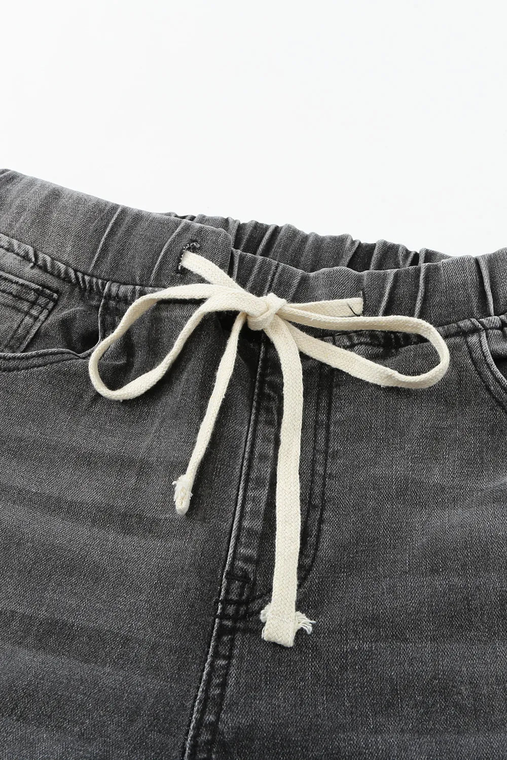 Drawstring Distressed Raw Hem Jeans with Pockets