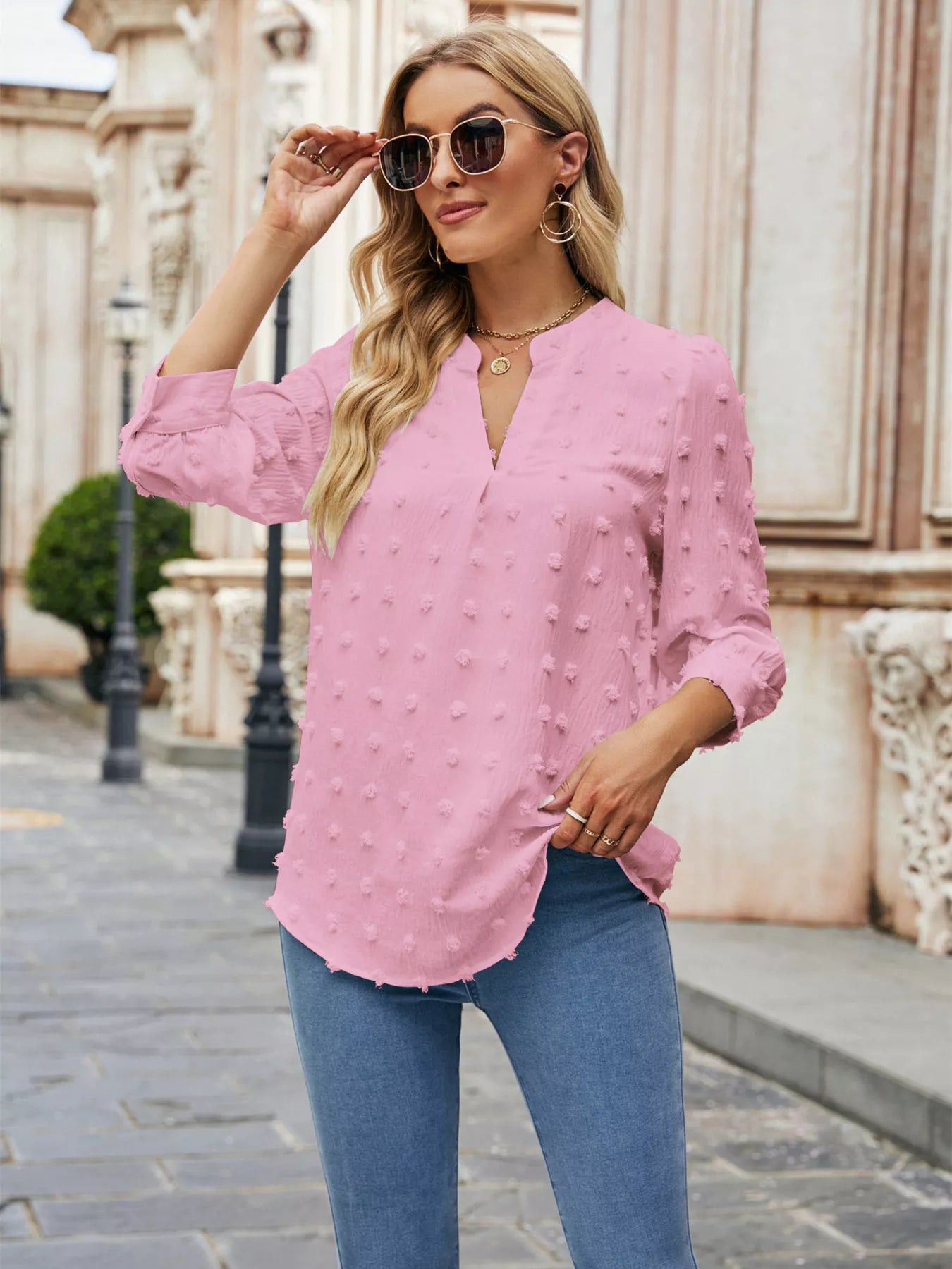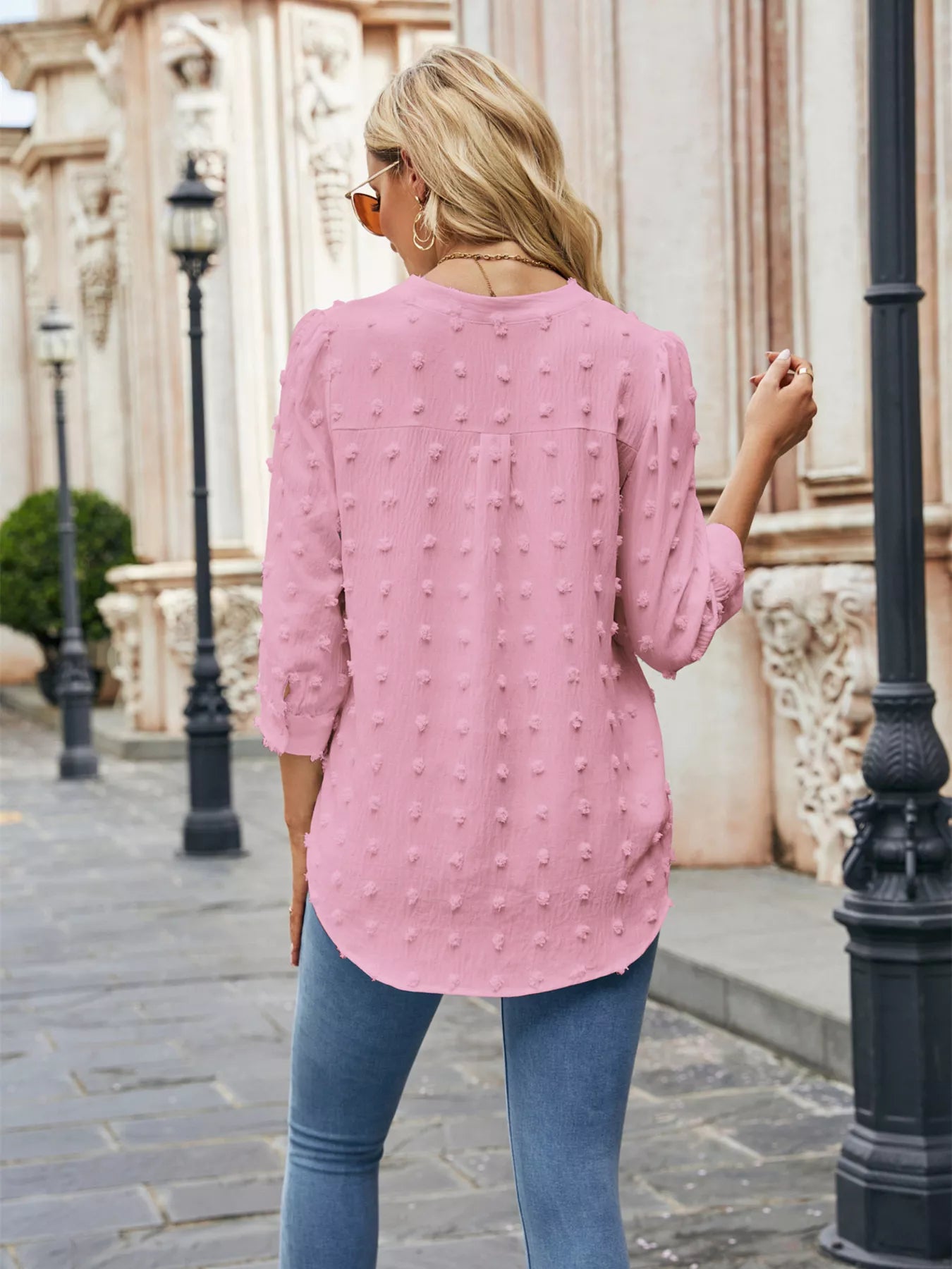 Swiss Dot Notched 3/4 Sleeve Blouse